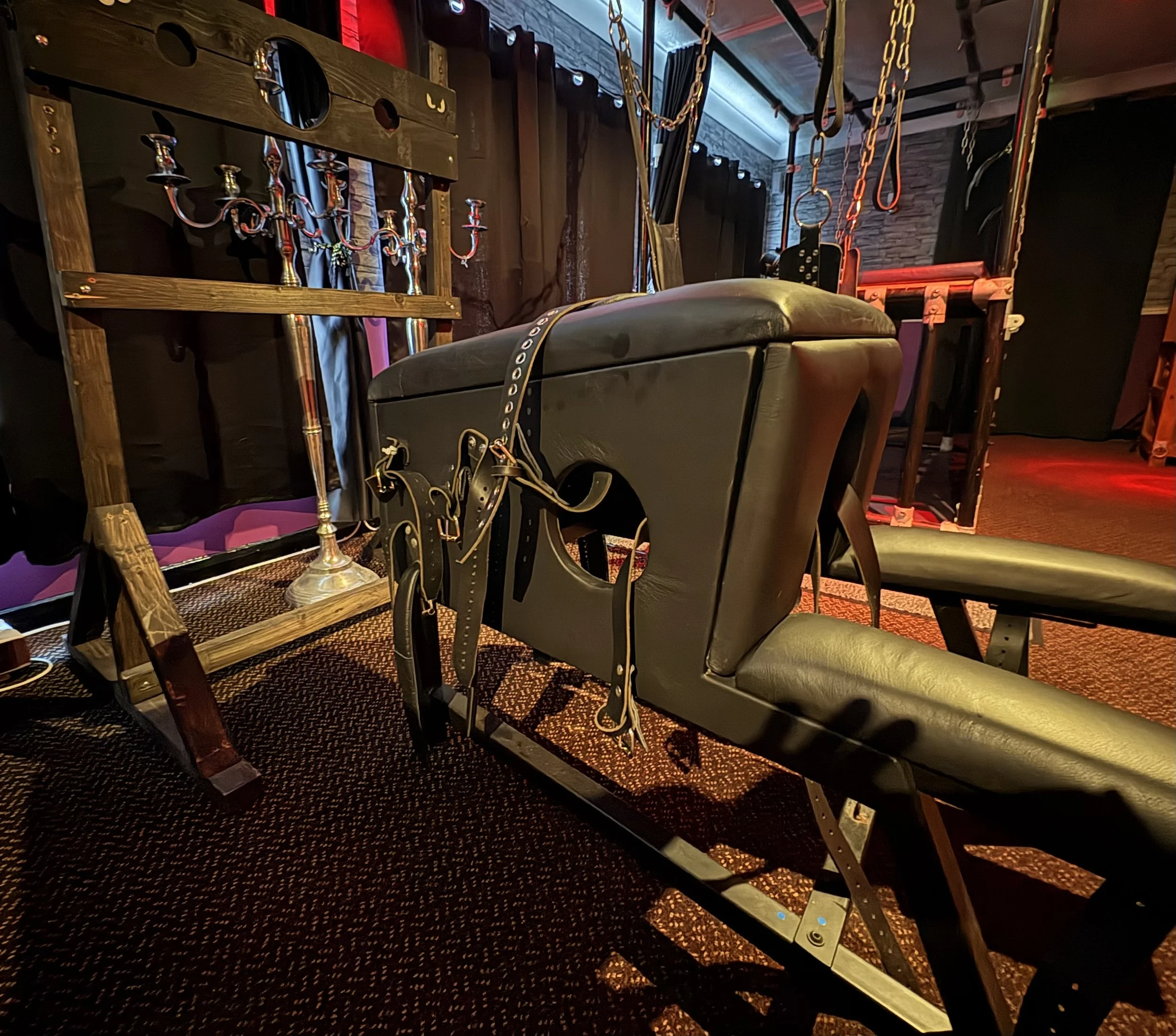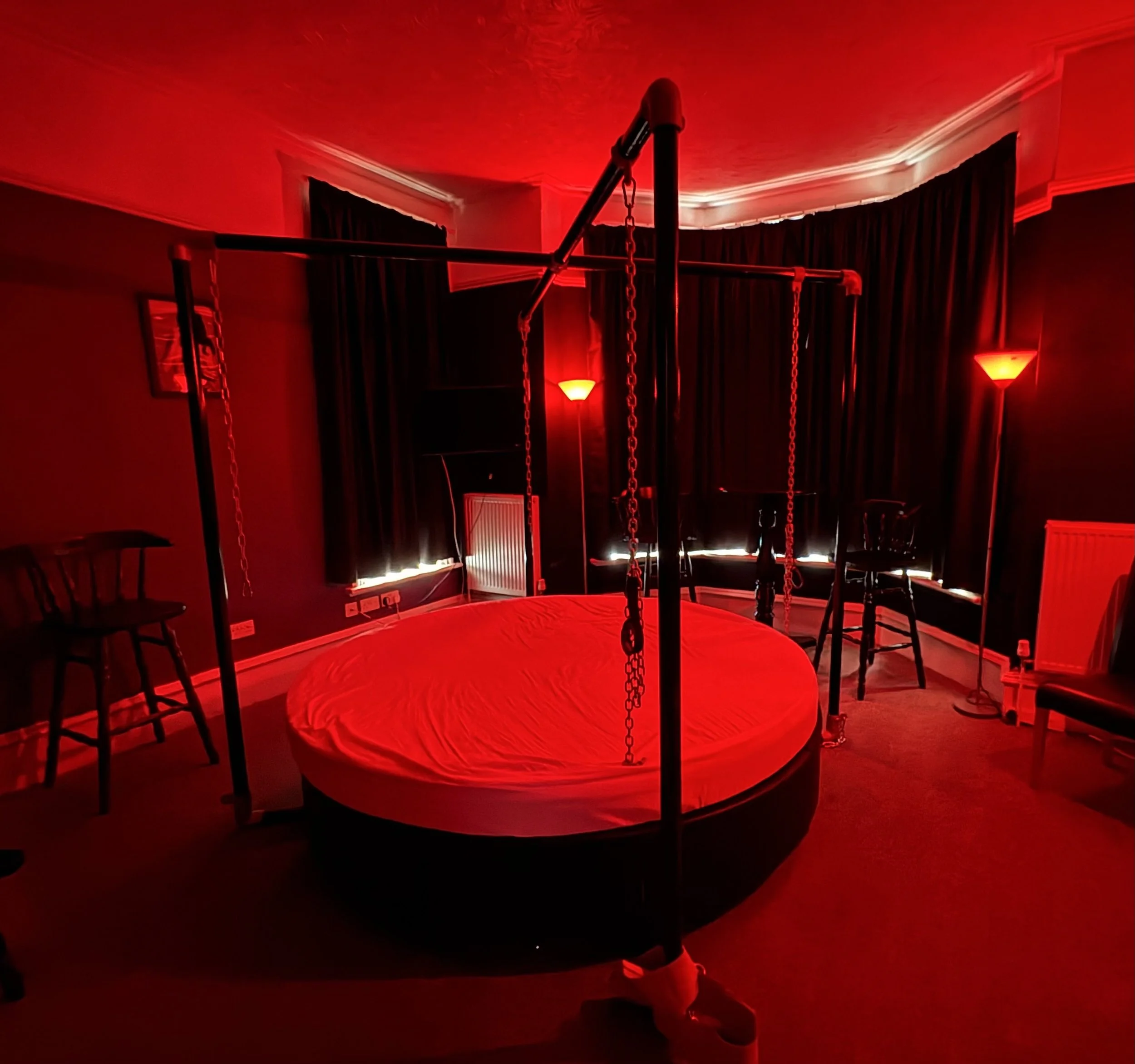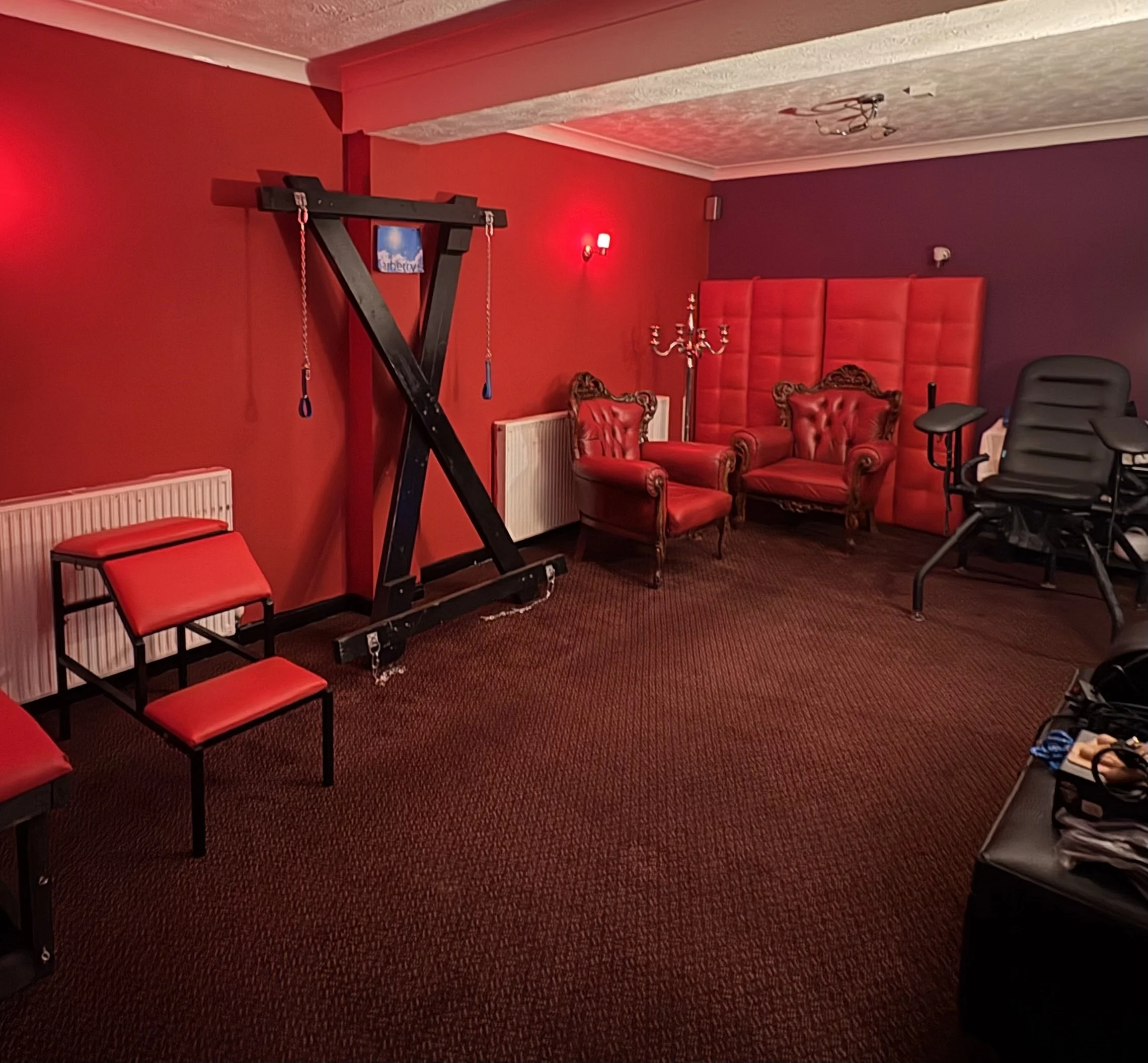 Our house is designed with pleasure and comfort in mind. Explore a variety of themed playrooms, unwind in our spacious dungeon, or enjoy a drink and good company in our comfortable lounge. Whether you’re here for one of our organised parties, or a One2One session or simply looking for a sensual getaway, Carberrys offers something for everyone.